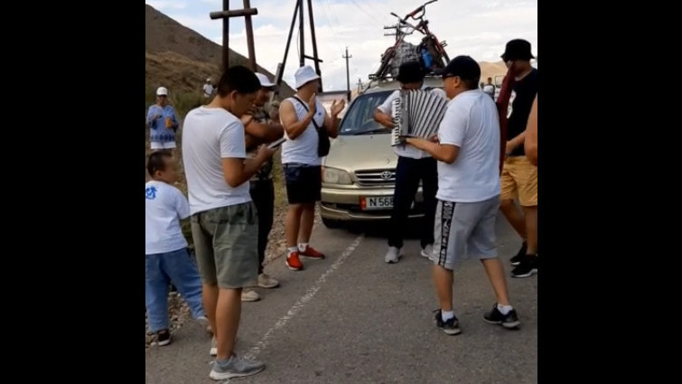 Двое мужчин создали особое настроение для «застрявших» в Бооме людей: Один играл на аккордеоне, а другой танцевал (видео)