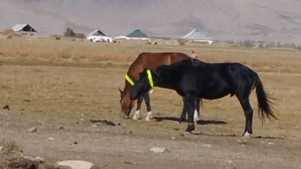 В Жумгале на лошадей вдоль дорог вешают светоотражающие ленты