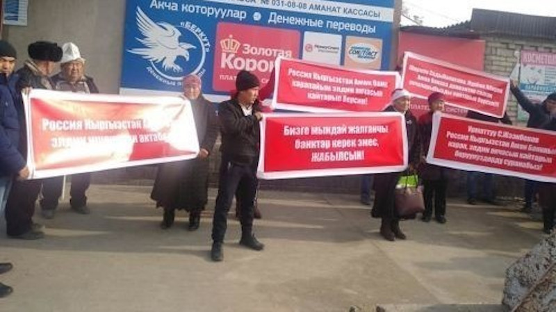 Митинг возле сберегательной кассы в Куршабе