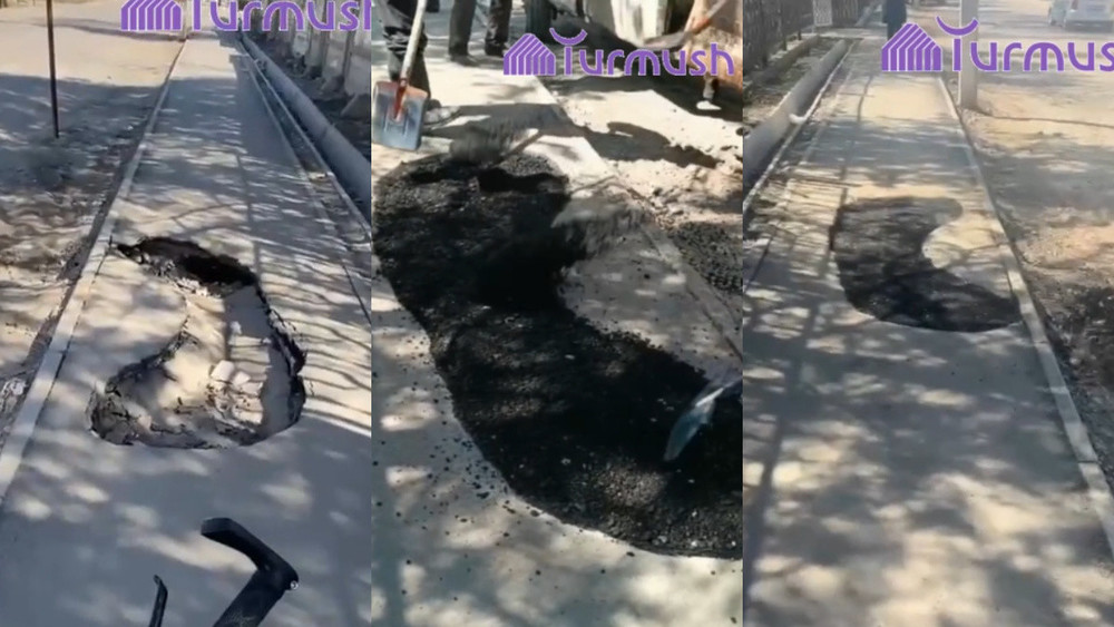 Большую яму на тротуаре в Токмоке заделали после обращения жителя. Видео
