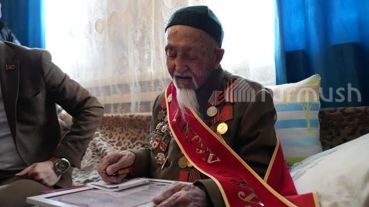 Получивший благословение от легендарного баатыра К.Жаманкулов — единственный ветеран ВОВ в Суусамыре. Фото