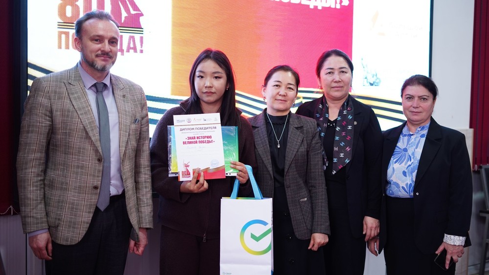 Далее студенты историко-филологического факультета КУМУ прошли онлайн-тест под названием «Знай историю Великой Победы!». Вопросы касались количества воинов, отправленных на фронт из республик Средней Азии, и их героического вклада в Великую Отечественную войну.