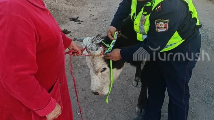 В Нарыне на домашний скот прикрепляют светоотражающие ленты