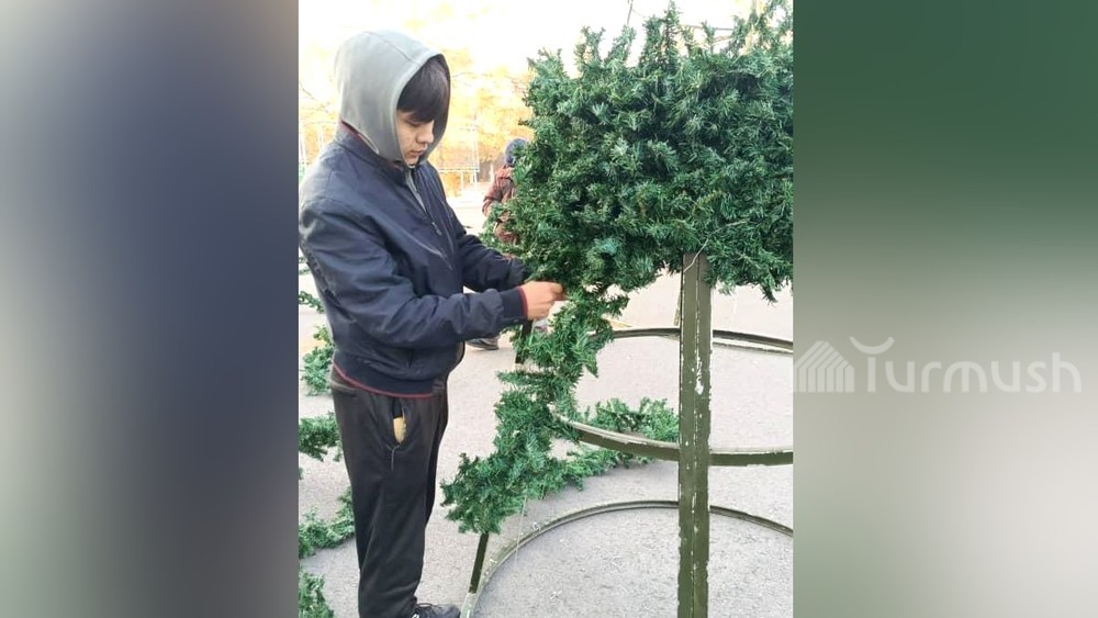 Turmush — В городе Кара-Балта началась подготовка к Новому году, сообщает корреспондент Turmush.