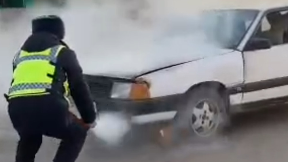 Сотрудники отдела обеспечения безопасности дорожного движения Кочкорского района, находившиеся поблизости на службе, оперативно среагировали, подбежали к автомобилю и успели вовремя потушить возгорание. Также они оказали водителю необходимую помощь и предотвратили возможные тяжёлые последствия.